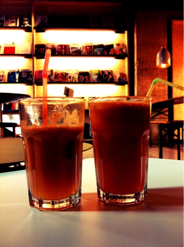 Lo celebramos por todo lo alto, es decir, una comida en mi tiempo libre del trabajo (para más no daba), en MAGASAND, ya que nuestros cuerpos necesitaban vitaminas, y qué mejor que un combinado para enchufarse tod la verdura y fruta con unos simples tragos????