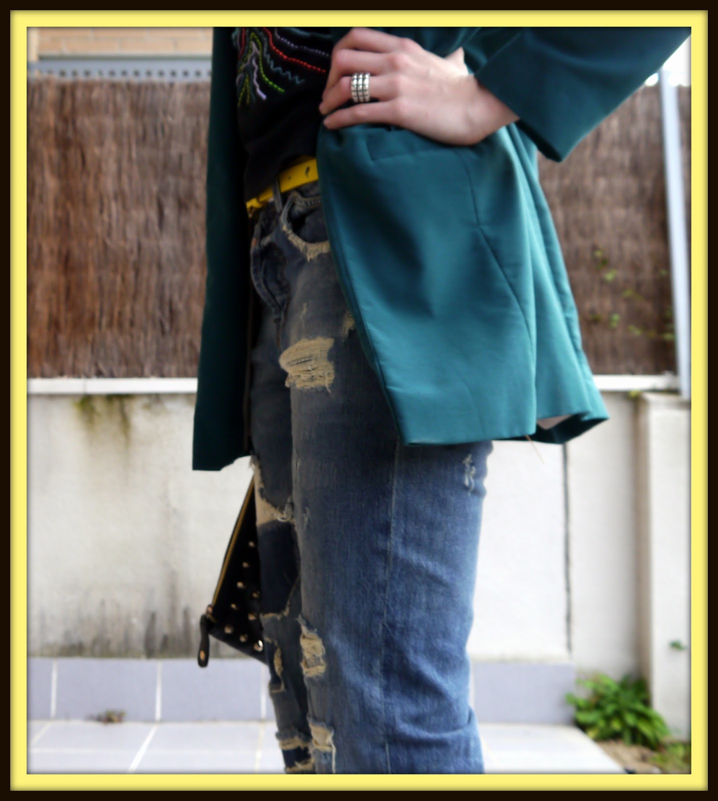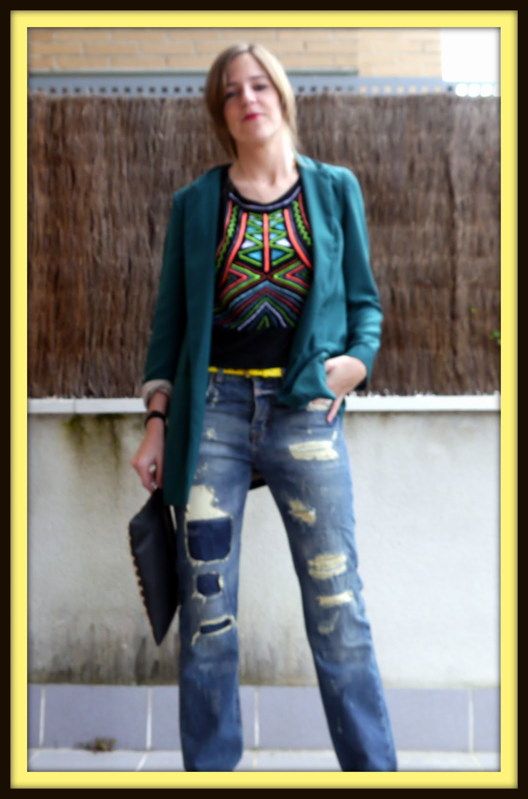 Con esta americana tipo blazier más larga me siento más cómoda ya que no estoy acostumbrada a ir con tiro alto por lo que así lo personalizo más a mi estilo.