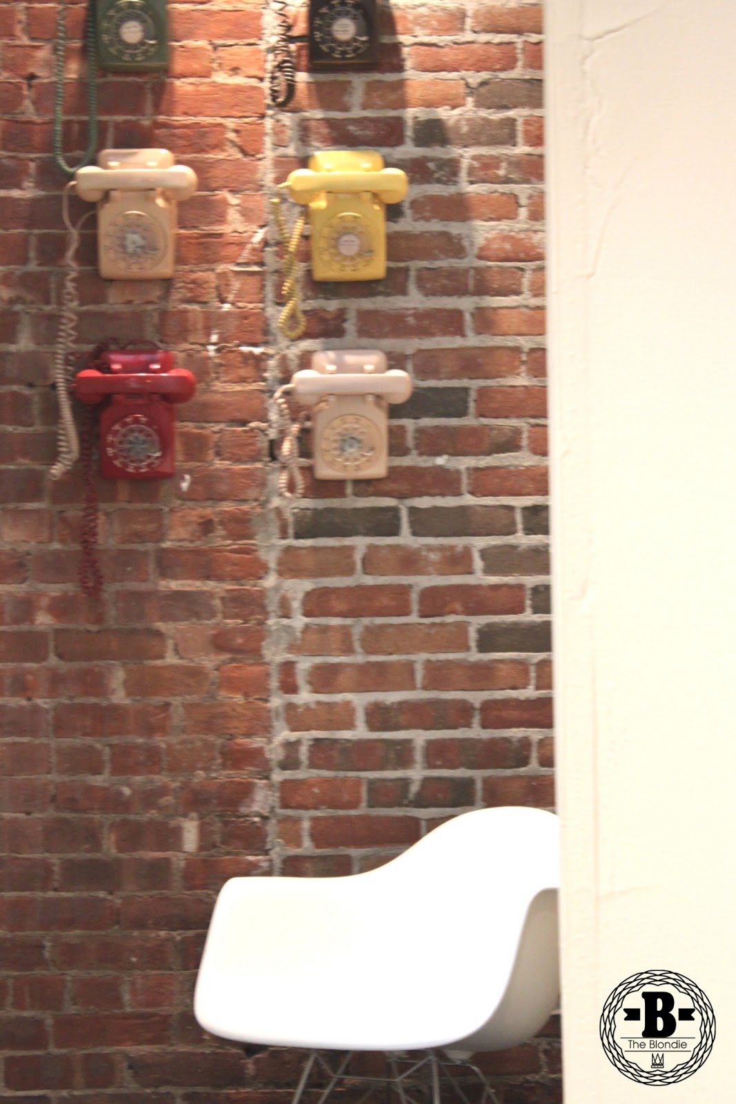 Teléfonos antigüos colgados en la pared