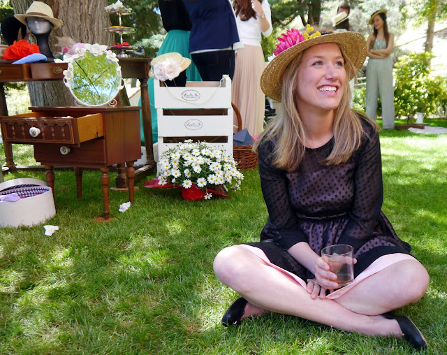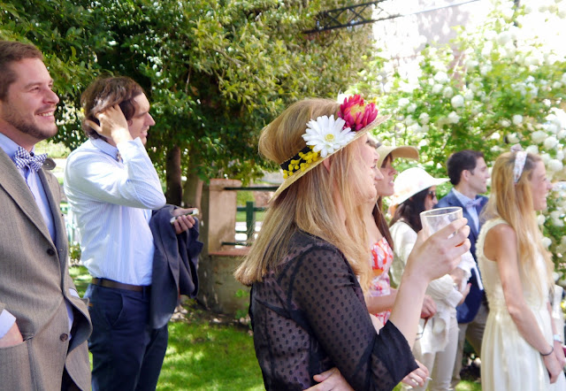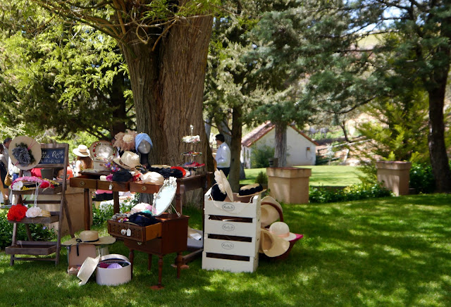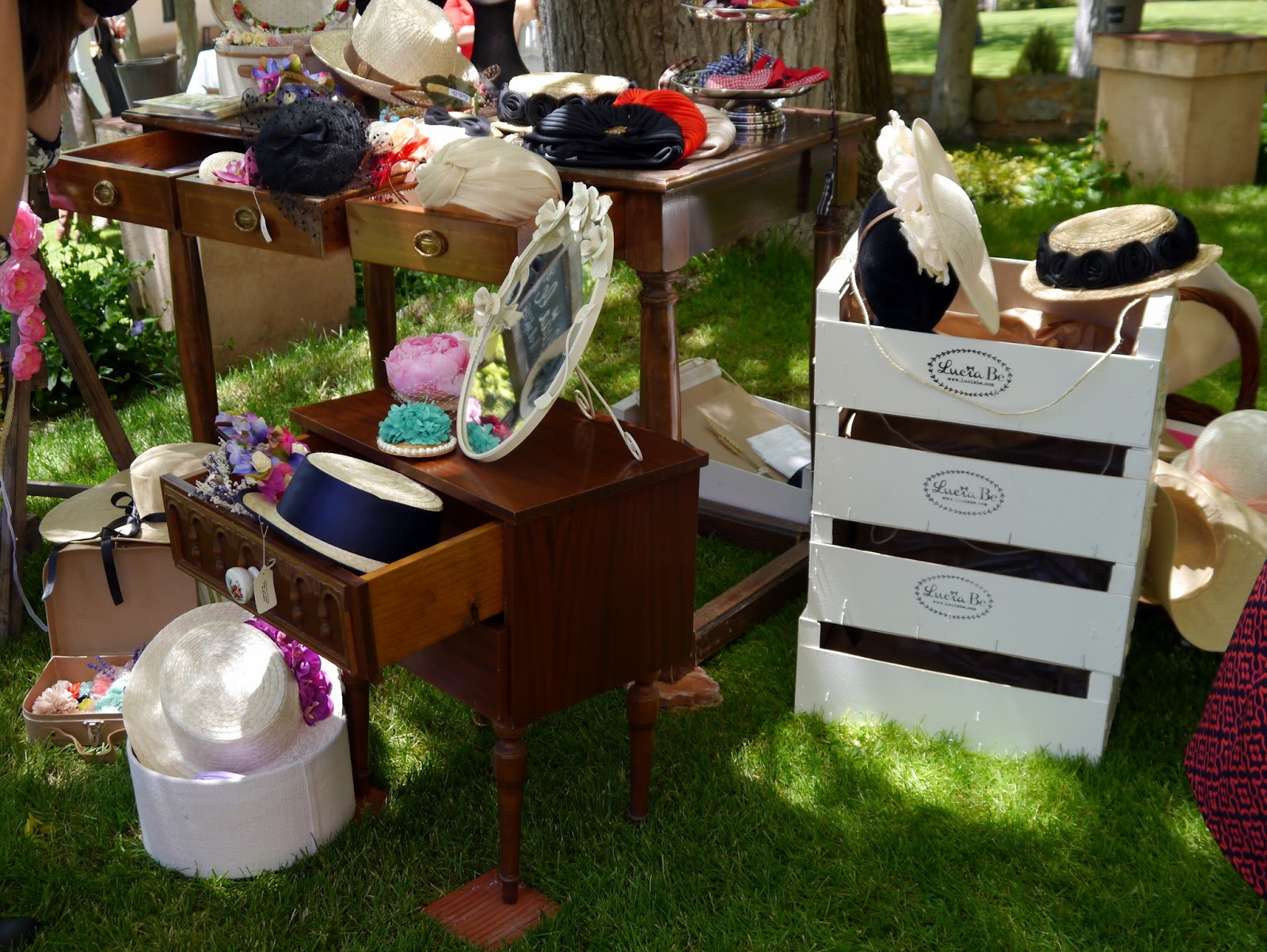 Y en cada mesa preciosos tocados de LuciaBe para probarte. Este canotier me tiene completamente enamorada.