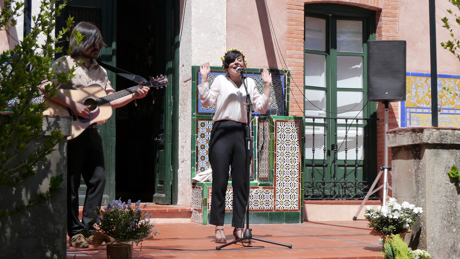 La gran anfitriona disfrutando de la música rodeada de sus preciosas creaciones.
