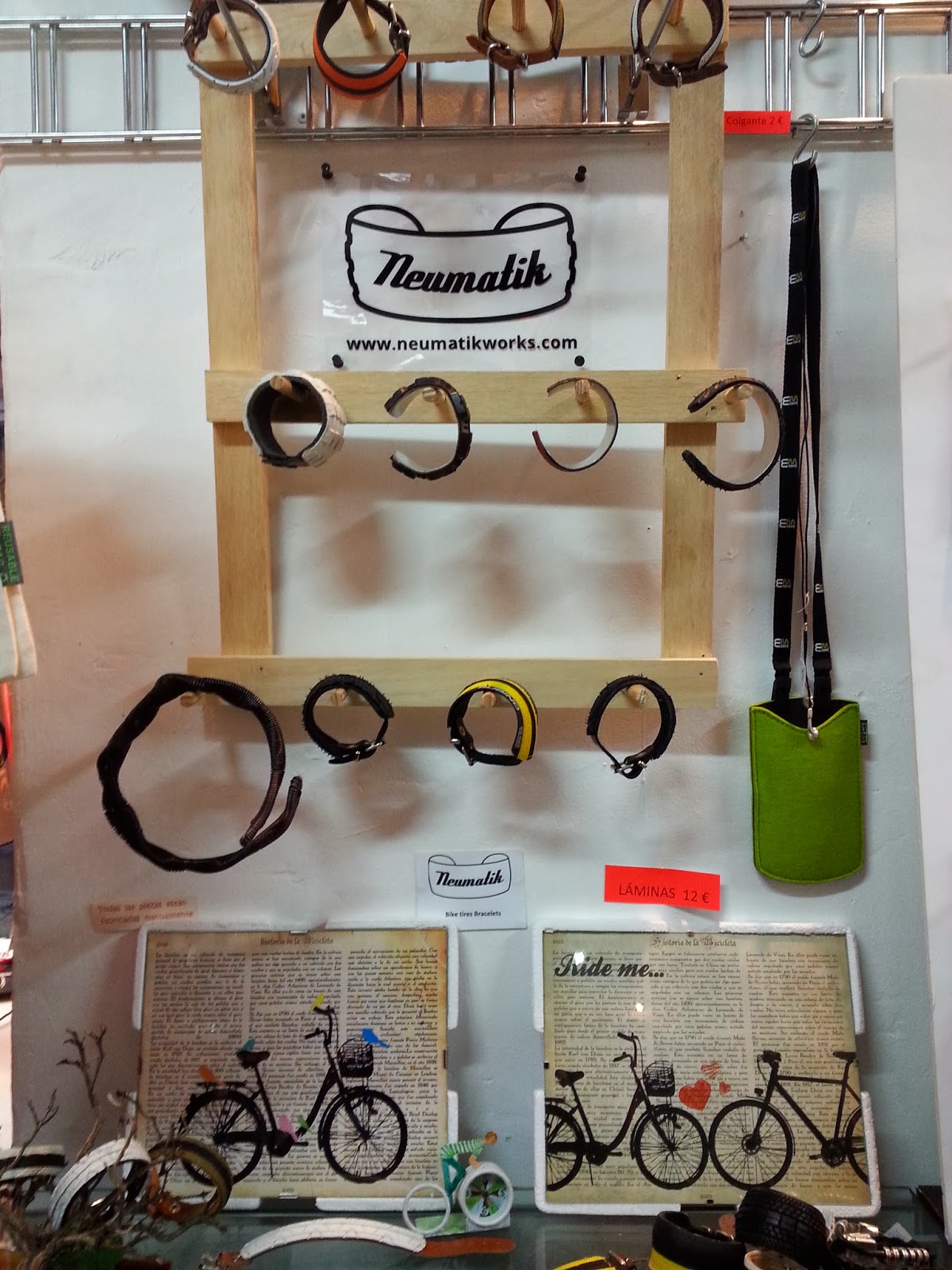 Haba de todo hecho con todo tipo e materiales; películas de 8mm que eran broches, pendientes, collares… otros complementos hechos con piezas de coches, piezas únicas creadas con productos de México cuya creadora llamada Teresa, muy amablemente tuve el placer de que me explicase cómo hacía cada pieza, de dónde provenía el material, su firma se llama HECHIZOS DE MÉXICO