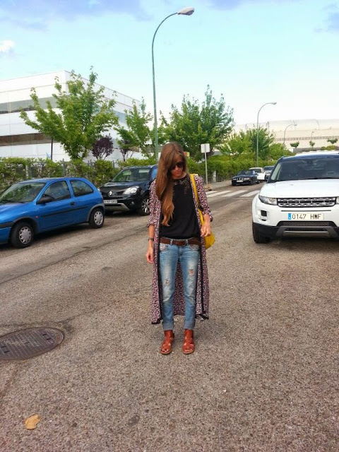 Llevaba; Chaqueta de Lol & Tonic, panyalones vaqueros rotos de Primark, cuerpo y bolso de Zara, sandaliad de Pull & Bear y gafas de Mango